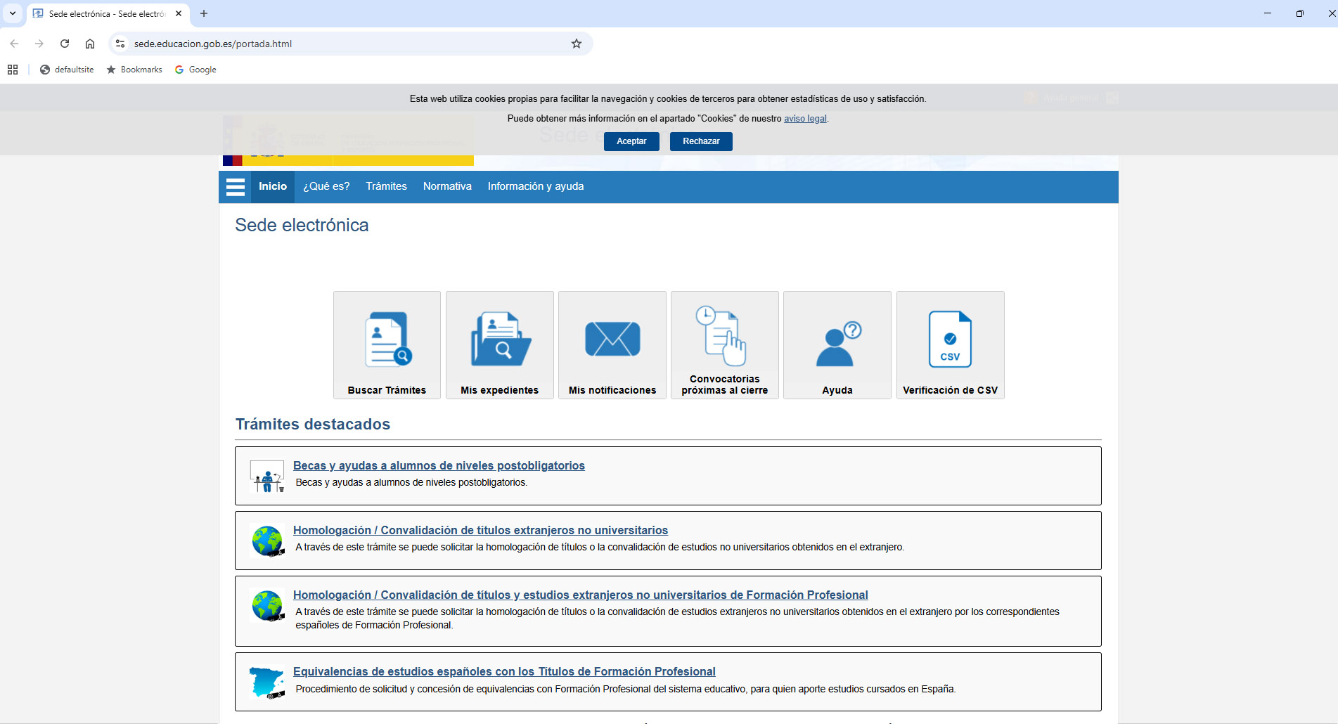 Las solicitudes se realizan a través de la Sede Electrónica del Ministerio de Educación: