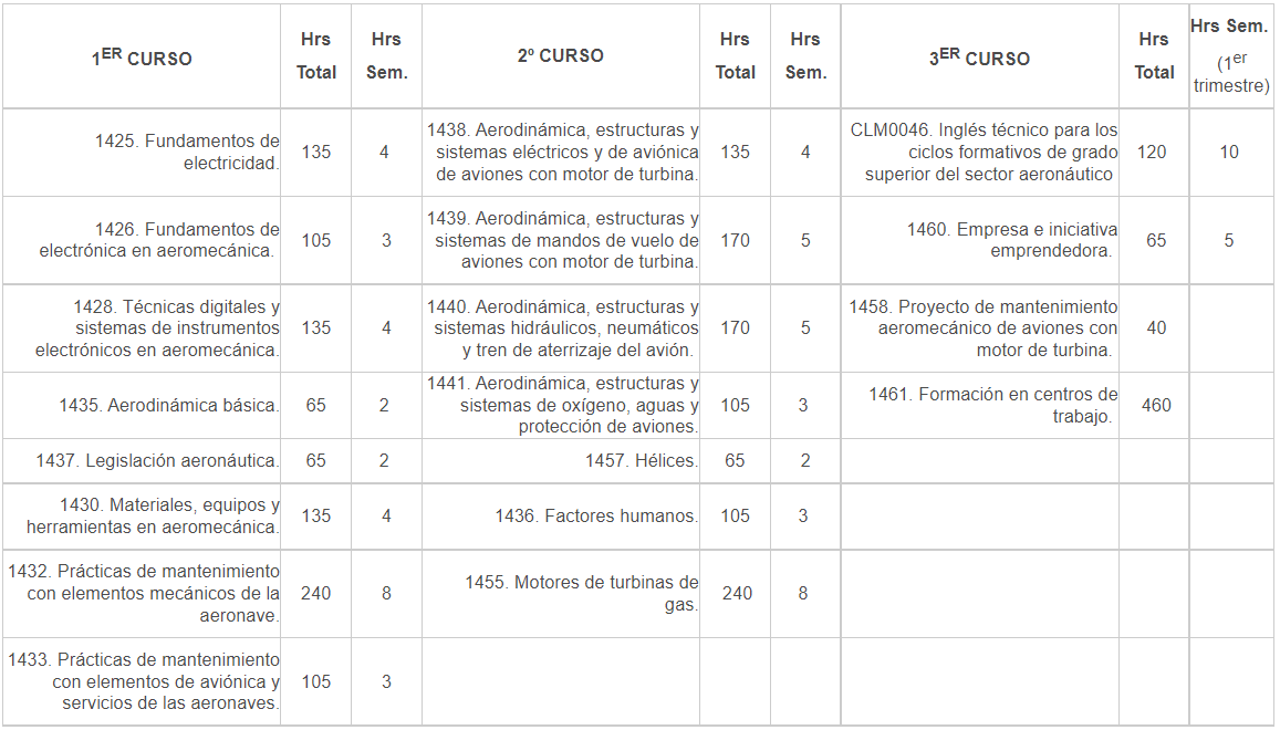 Adquiere la formación necesaria para realizar el mantenimiento preventivo y correctivo de aeronaves con motor de turbina, garantizando su seguridad y operatividad. Un ciclo de alta especialización que te prepara para trabajar en compañías aéreas, talleres de mantenimiento aeronáutico y empresas del sector aeroespacial a nivel nacional e internacional.