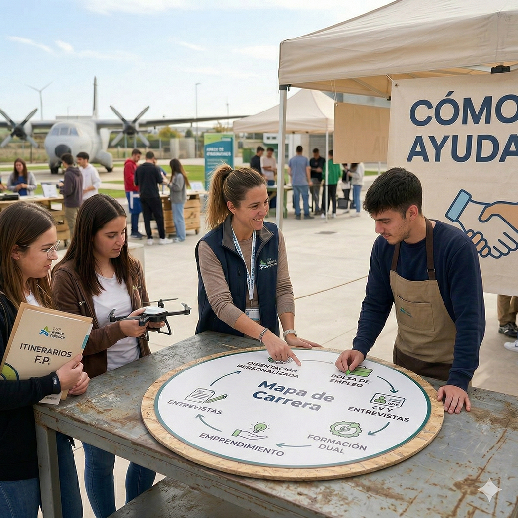 El espacio de Información y Orientación Profesional del CIFP Aguas Nuevas acompaña al alumnado y a las personas interesadas en la Formación Profesional en los momentos clave de su recorrido: elegir, confirmar, continuar o reorientar.